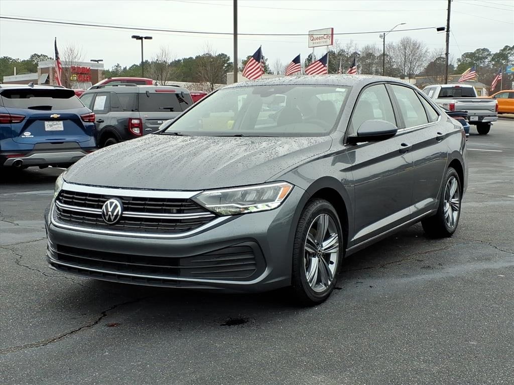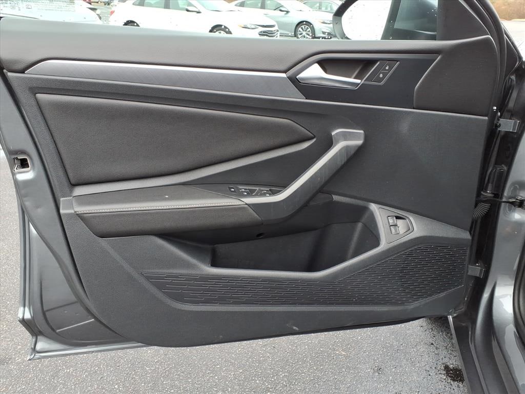 Well Equipped with:Jetta 1.5T SE, 1.5L I-4 DI DOHC Turbocharged, 8-Speed Automatic with Tiptronic, FWD, Gray, 4 Speakers, 4-Wheel Disc Brakes, ABS brakes, Active Blind Spot Monitor, Air Conditioning, Alloy wheels, Auto-dimming Rear-View mirror, Automatic temperature control, Brake assist, Bumpers: body-color, Delay-off headlights, Driver door bin, Driver vanity mirror, Dual front impact airbags, Dual front side impact airbags, Electronic Stability Control, Emergency communication system: VW Car-Net Safe & Secure 5-year, Exterior Parking Camera Rear, Front anti-roll bar, Front Bucket Seats, Front Center Armrest, Front dual zone A/C, Front wheel independent suspension, Fully automatic headlights, Heated door mirrors, Heated Front Seats, Heated front seats, Illuminated entry, Leather Shift Knob, Leather steering wheel, Low tire pressure warning, Occupant sensing airbag, Outside temperature display, Overhead airbag, Overhead console, Panic alarm, Passenger door bin, Passenger vanity mirror, Power door mirrors, Power driver seat, Power steering, Power windows, Radio data system, Radio: MIB3 Composition Color w/6.5 Touchscreen, Rain sensing wipers, Rear anti-roll bar, Rear reading lights, Rear seat center armrest, Rear window defroster, Remote keyless entry, Speed control, Speed-sensing steering, Split folding rear seat, Steering wheel mounted audio controls, Tachometer, Telescoping steering wheel, Tilt steering wheel, Traction control, Trip computer, V-Tex Leatherette Seat Trim, Variably intermittent wipers, and Wheels: 17 Twin 5-Spoke Silver Painted Alloy.
